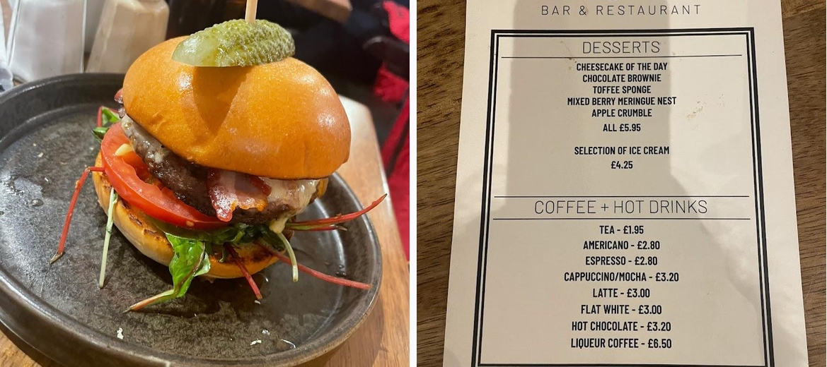 Food was absolutely delicious, I highly recommend it. Had a good variety of options from a delicious casserole to pasta dishes, salads and burgers. Really recommend it. Can be quite cozy so wouldn't try and bring in big bags and what not.